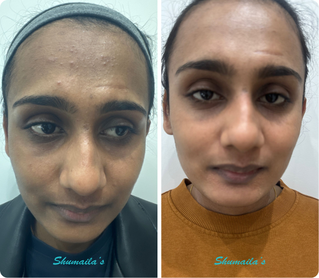 I started my treatment in March with Shumaila Eastham and it was a good experience when comparing to my before and after. I was having hyperpigmentation on my face and did cosmelan and it changed my face completely. Everyone started complimenting me and I got the confidence to come out of my house without makeup. I am happy now and maintaining my results now Thank you Dr Indu and Shumaila for the best experience.