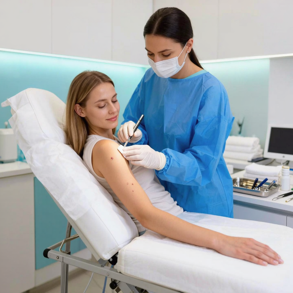 GMC-registered dermatologists use precise techniques like electrocautery or surgical snip excision. These methods are minimally invasive and performed in sterile conditions.